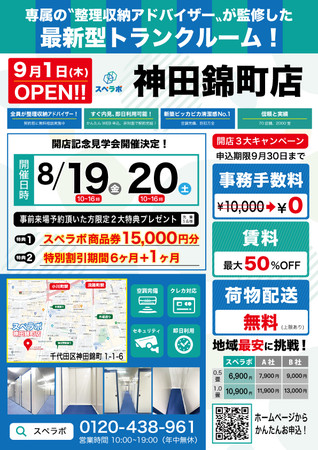 【9月1日(木)オープン】見学から契約、解約まで完全非接触・非対面、お申し込みからご利用まで最短1時間!都内にて絶賛運営中のトランクルーム【スペラボ】が千代田区神田錦町に出店!