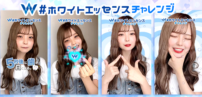 この季節に合わせて、ホワイトエッセンスは、「#ホワイトエッセンスチャレンジ」を実施することといたしました。すっぴん、シャボン玉アイコン、白い歯など本チャレンジでしか利用できない特別なエフェクトと、簡単なのによりキュートに見えるダンスで、ユニークな動画投稿が可能になります。