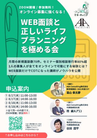 【参加者1,000名超】金融セールス向けセミナー「オンライン募集に強くなる!WEB面談と正しいライフプランニングを極める会」実施のお知らせ