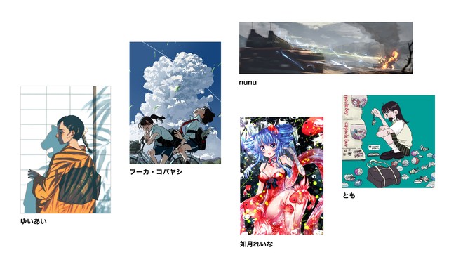 orie、Haる、ミヤマオワリ、HIZGI、かたるに。、ラリアット、こたろう、ますだみく、uyumint、熊谷のの、倉田明佳、周憂、fjsmu、小夜子、pasoputi、CRYBORG、ななみ雪、そめた、CHO、番ノ渡、いくみ、ざいん、ねこぽた。、ぽんすけかいかい、星りんご、五十嵐朱梨、呉晴、鞘ェもん、noco.、KookieFunk、のり恋、綾村 菊介、molly、薔薇缶、IORI KIKUCHI、NANCYSNAKE、Saito.、オガワナツミ、みずの紘、モナカ、寺田てら、梅田あいな、てんてこ、フーカ・コバヤシ、HOJI、OA、TAO、ガブリイズム・ガブリメリー、きある、くりたゆき、ミツメユラ、やsい、alma、hachika、うすくち、あらをか青い、すり餌、へいはち、まくらたみ、中西瑛理香、白、名司生、犀将、池上幸輝、埜々原、冨田マリー、ケイゴイノウエ、はーみん、2742nao、北極まぐ、ub1mo、ekao、色塩 SHOKUEN、ido、月戸、Osu、七星、tkc、二反田こな、岡添健介、エカニス・エニカ、乃の木そよ、しぐた、ちょん*、天川たまを~、ミツテル、来夏、ごろく、青山哲士、NAKAKI PANTZ 他