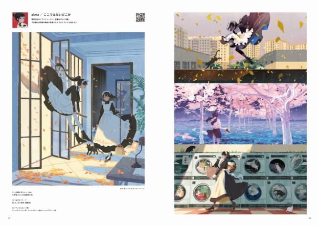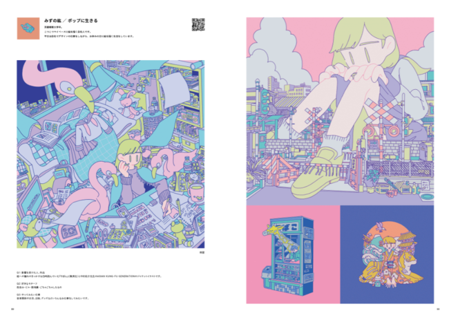 その他にも、出現画廊の招待した18名のLEADING CREATORSの作品や、108名の参加クリエイターの代表作、イラストレーターとアイドルのコラボ企画、特別番組のコラムなど、盛りだくさんの228ページとなっています。