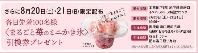 さらに、土日限定!福島産いちごをまるごと使用のミニかき氷も先着100名様へプレゼントいたします。