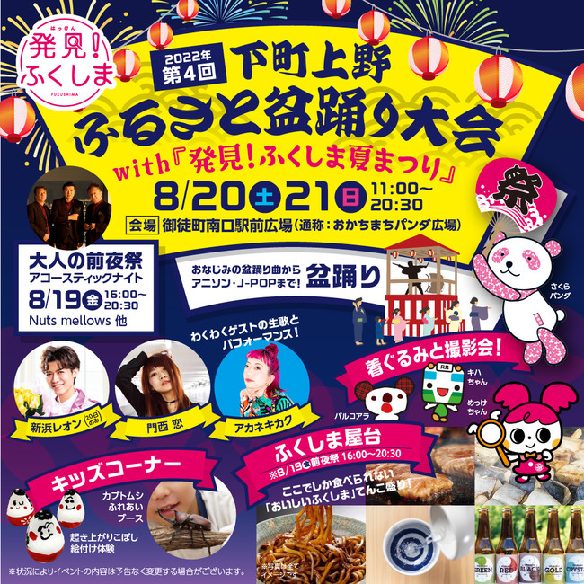 【3年ぶり開催!】8月20日(土)・8月21日(日)2022年第4回下町上野ふるさと盆踊り大会with『発見!ふくしま夏まつり』【大人の前夜祭も!】