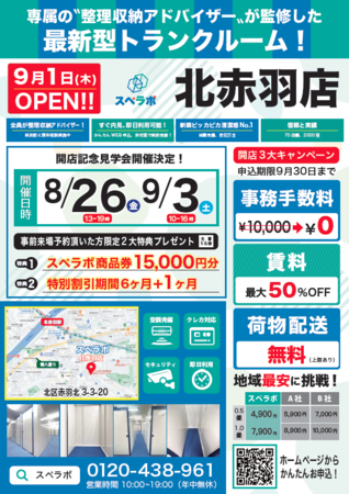 【9月1日(木)オープン】見学から契約、解約まで完全非接触・非対面、お申し込みからご利用まで最短1時間!都内にて絶賛運営中のトランクルーム【スペラボ】が北区赤羽北に出店!