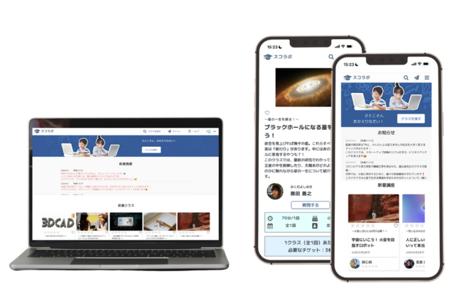 スコラボは、子どもたちが自分のロールモデルとなるような先生から、少人数オンラインライブ授業での対話を 通じて直接学ぶことができるプラットフォームです。