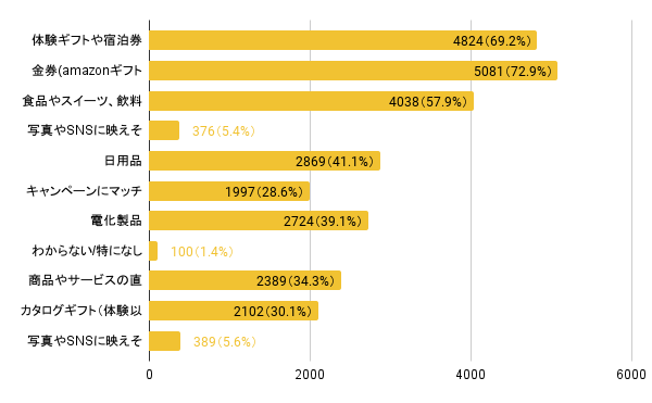 もらって嬉しいと思うプレゼント/ノベルティの問いには、「金券」が最も多く72.9%、次いで「体験ギフトや宿泊券」が69.2%となっており、モノを直接プレゼントするよりも、お買い物や体験機会の創出など外出を誘発するようなプレゼントが票を集めました。