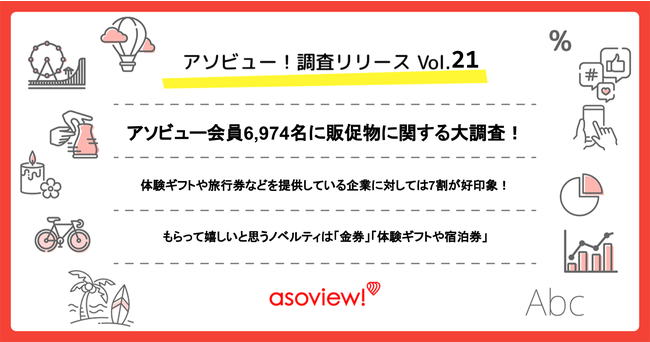 休日の便利でお得な遊び予約サイト「アソビュー!」(URL:https://www.asoview.com/)を運営するアソビュー株式会社(東京都品川区/代表取締役CEO 山野 智久/以下当社)は、キャンペーンのノベルティや販促物に関する調査を行いました。