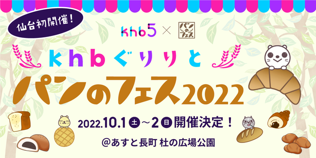 今回はkhb東日本放送とコラボレートし、仙台初となる『パンのフェス』を2022年10月1日(土)~2日(日)の2日間、「あすと長町 杜の広場公園」にて開催いたします。