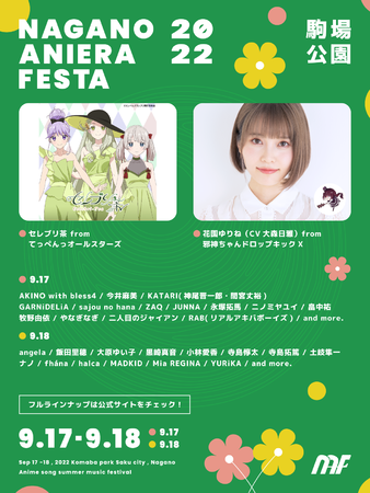 長野県最大規模のアニソン野外フェス『ナガノアニエラフェスタ』一般販売開始。緊急参戦決定。人気TVアニメ「邪神ちゃんドロップキックX」、「てっぺんっ!!!!!!!!!!!!!!!」より素敵なゲスト登場!