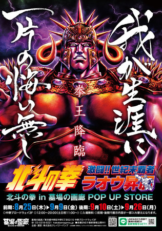 8月25日(木)~9月26日(月)の期間中、「墓場の画廊」にて不滅の人気コミック『北斗の拳』から”ラオウとの激闘”にスポットを当てた特別企画【北斗の拳~激闘!!世紀末覇者ラオウ昇展~】を開催!
