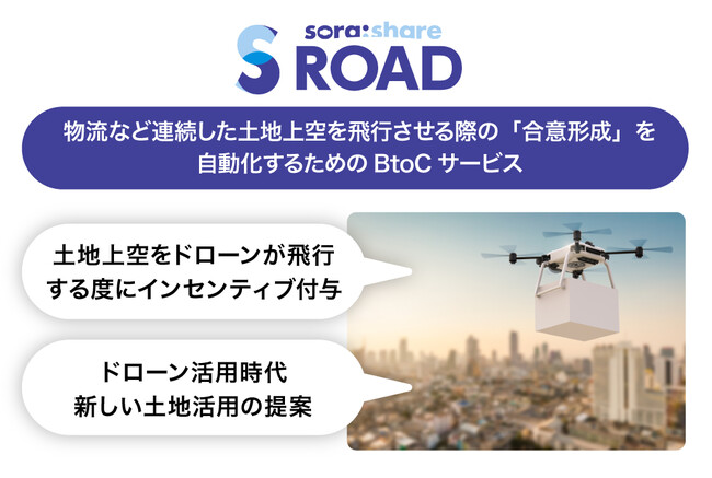 ソラシェアには3次元空間(緯度・経度・高度のデータセット)に名称を与える「スカイドメイン」という仕組みを導入し、世界中の空を識別します。空のURLともいうべき「スカイドメイン」に紐づくデータベースには、空域の3次元情報以外にもドローン飛行の合意状況、インセンティブの内容から、土地所有者や管理者の情報、平均風速や気象などのリスク要素に至るまで格納でき、それらの情報には必要に応じて外部からのアクセスも可能な設計となっています。