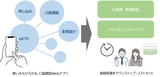 このたび、当社はきらやか銀行へ「口座開設Webアプリ+eKYC」のサービス提供を開始しました。本サービスでは株式会社ACSiON(アクシオン)のオンライン本人認証「proost(プルースト)」と連携し、金融機関と顧客の利便性向上に貢献します。
