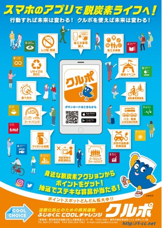 静岡県は、県民一人ひとりが地球温暖化防止のための活動を楽しみながら実践できるよう、スマートフォン等のアプリ「クルポ」を活用し、県民運動ふじのくにCOOLチャレンジを展開しています。
