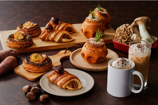 木の実がなって葉が色づき収穫の季節を迎えた森の情景をイメージし、さつまいも、栗、きのこなどの秋の味覚を用いたブレッドやドリンクをご用意しました。