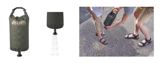 既存品は9Lの容量でしたが、新製品は2.5Lとソロキャンプにも最適なサイズです。ミニサイズでありながら約2.5分間もシャワーを出すことができるので、キャンプ場での手洗いや食器洗いのほか、水辺などでの外あそびの際に手足の砂を落とす場合など、ちょっとした洗浄の際にたいへん便利です。