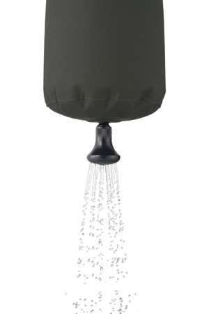 最大2.5Lの水が入り、約2.5分間シャワーを出せる。もちろん途中で止めることも可能。
