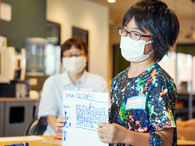分析によって判明した性質を踏まえて商品アイデアを考えていくワークでは、性質をどう活かせるか親子で話し合いながら商品名・商品の説明・イメージ図をシートに書き込んでいき、最後はみんなの前で発表を行いました。