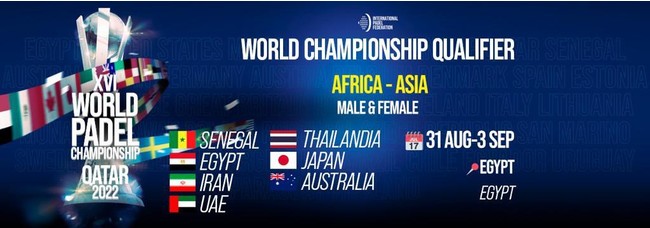 8月31日~9月4日にエジプトで開催されるアジア・アフリカ予選において、男女共に7か国が出場予定で、優勝した1か国のみが10月31日~11月4日に行われるカタールでのパデル世界大会への出場権を得ます。出場予定国はオーストラリア、エジプト、イラン、セネガル、タイ、UAE、日本の7か国です。日本は男女共に第1シードとして出場します。皆様、ご声援のほどどうぞよろしくお願い致します。