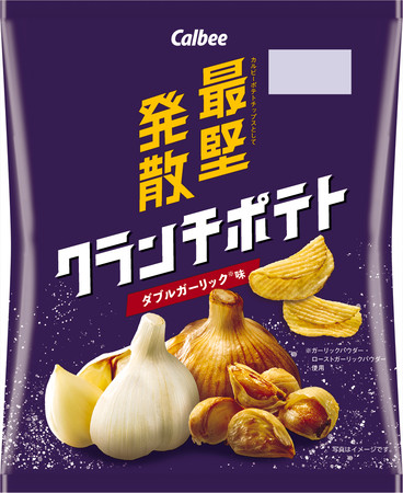 ●『クランチポテト ダブルガーリック味』は、ガーリックパウダーとローストガーリックパウダーの2種類のニンニクを使用。隠し味として唐辛子を加えることで、よりパンチの効いた味わいに仕上げました。