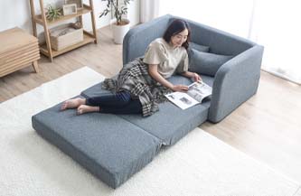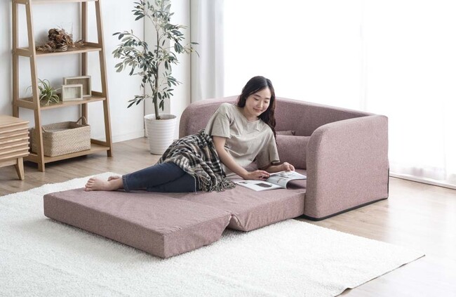 3つのスタイルでくつろげるソファベッド『FLATY(フラッティ)』をニュアンスカラーで新発売。今旬カラーのソファベッドが一層落ち着けるリラックススペースを演出します。