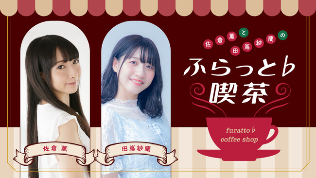 人気声優・佐倉薫さん&田嶌紗蘭さんによるオンラインくじコラボ特別番組『佐倉薫と田嶌紗蘭のふらっと♭喫茶』が放送決定。全4回の放送ではくじの景品素材となる撮影風景なども配信予定!
