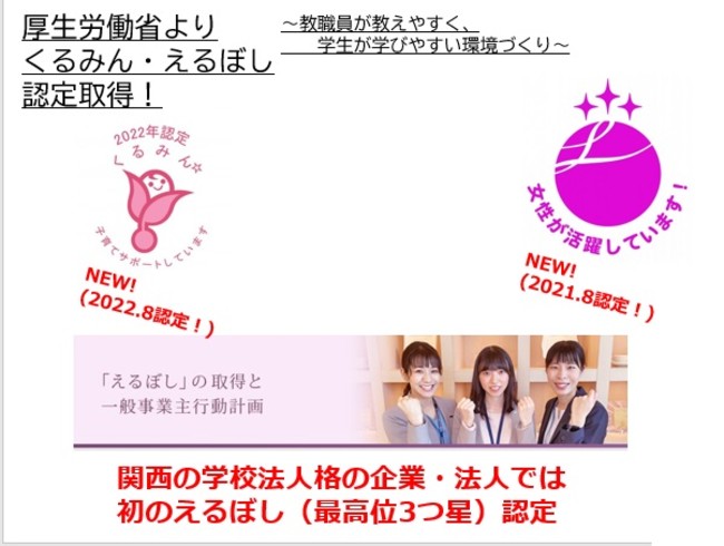 学校法人の法人格を有する「えるぼし」の認定は、京都府内はもちろん、関西では初となる認定を受けました。