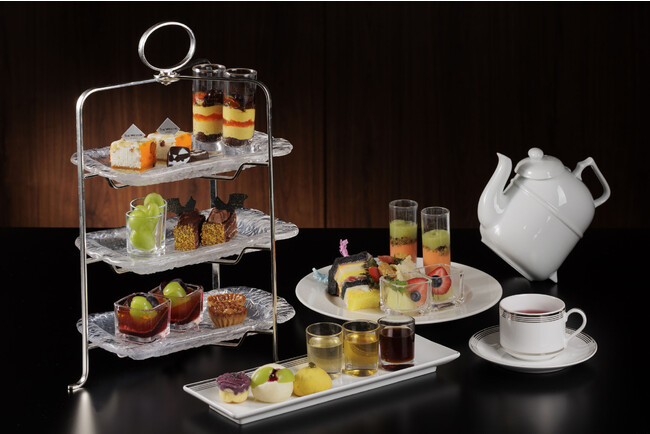 さらに10月1日(土)からは、パティシエのイマジネーションが光るハロウィン限定アレンジも。シャンパンのボンボンショコラとフルーツのパウンドケーキにはジャック オ ランタンが乗り移り、ビターチョコレートのケーキにはこうもりが宿ります。魔女のエキスをイメージした黒ぶどうとオレンジのジュレなど、ハロウィン気分を盛り上げるデコレーションが満載です。