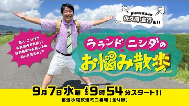 ラランド・ニシダさんの“初”冠番組となる当番組では、歩くことを推進するプロジェクト 「歩こう。佐賀」を実施する佐賀県の県内各地を、地元の子どもたちと一緒に散歩します。大人ながらにやんちゃな心を持つニシダさんが、純粋無垢な子どもたちの悩みにどんなアドバイスをするのか注目です。また、そんなニシダさんをよく知る佐久間宣行氏を番組の企画演出に迎え、番組を盛り上げます。