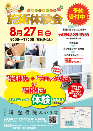 【堺整骨院 みやき院が行う「施術体験会」ポスター】