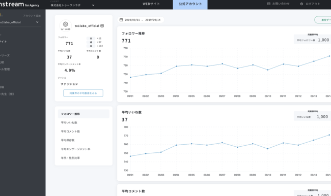 ※登録時に選択いただいた自社のアカウントと同ジャンルの数値しか閲覧いただけません。