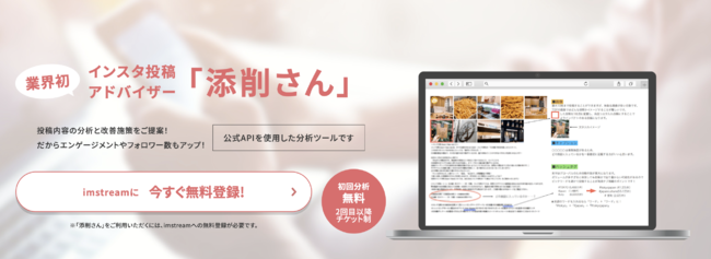 株式会社トゥーワンラボ(所在地:東京都渋谷区、代表取締役:小林淳)はインスタグラムマーケティング支援ツール「imstream(インストリーム)」にアカウント分析機能、競合比較機能、投稿後の添削機能「添削さん」のベータ版をリリース致しました。