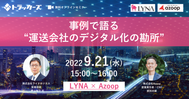 <9月21日(水)トラッカーズセミナー>ライナロジクス × Azoopによる、「事例で語る“運送会社のデジタル化の勘所”」開催