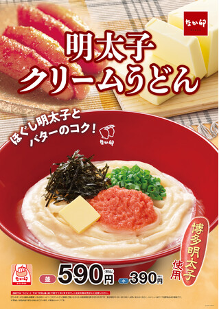 ぜひこの機会に、お近くの「なか卯」やご家庭で、博多明太子を使った「明太子クリームうどん」をお楽しみください。