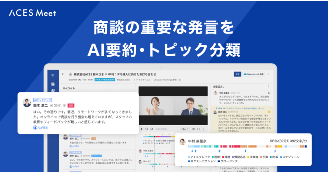 営業AIツールACES Meet 重要な発言を抽出し要約する機能をリリース