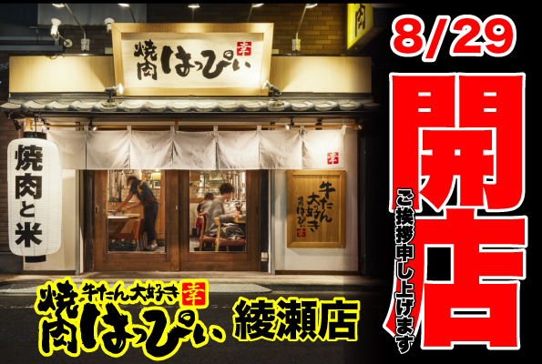 『牛たん大好き焼肉はっぴぃ 綾瀬店』が2022年8月29日(月)開店!