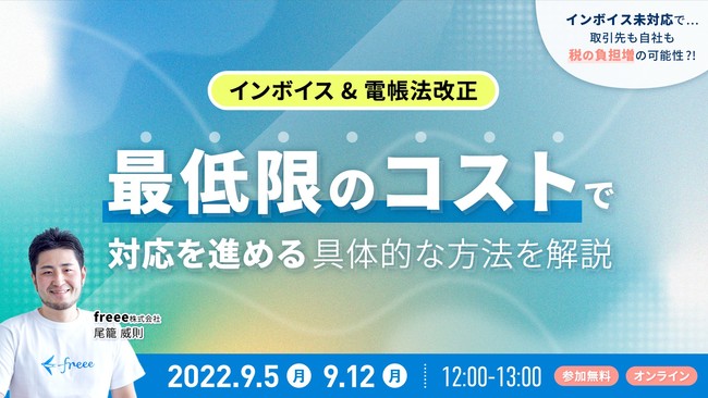freee、インボイス制度対応に向けたオンラインセミナー9月5日(月)、9月12日(月)開催