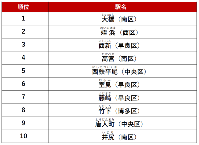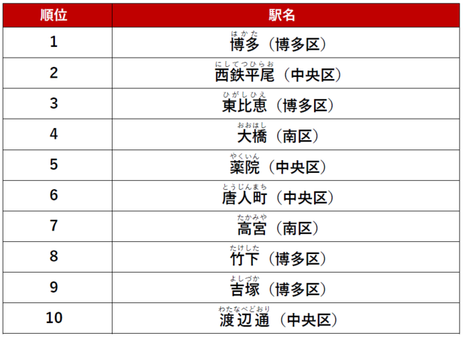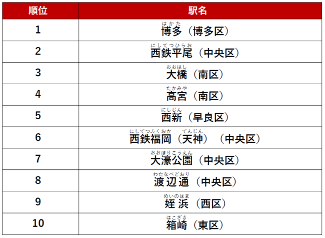 <「アットホーム人気の駅ランキング 福岡市編」 調査結果>