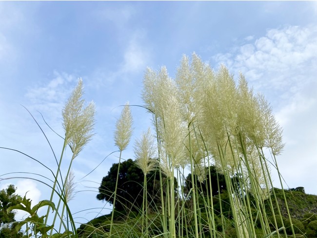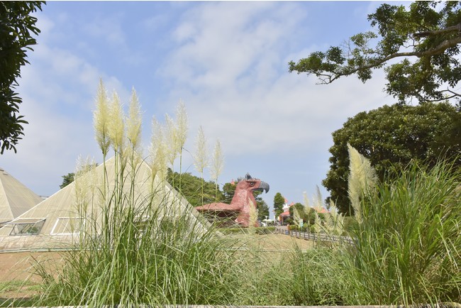 さらに、園内のピラミッド温室付近と、公園入口から駐車場にかけてのエリアに植栽している「パンパスグラス」が見頃を迎え、残暑厳しい中早くも秋の訪れを告げています。