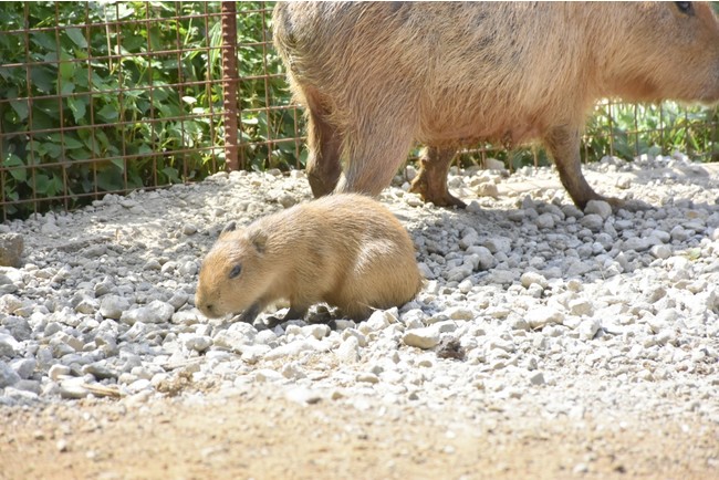 「カピバラ虹の広場」では、カピバラたちとのふれあい体験が楽しめるエリアですが、赤ちゃんは今後様子をみながら徐々にふれあいエリアへデビューする予定です。
