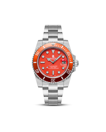 風防には傷の付きにくいサファイアガラスを採用、逆回転防止機能のついたベゼルにはセラミックやアルミニウムを採用しています。