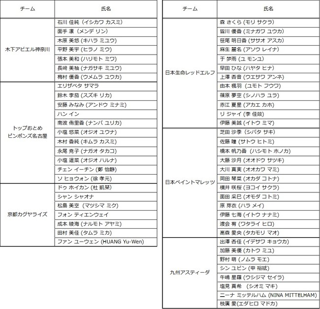 Tリーグでは、2022-2023シーズン 登録完了選手を以下の通りお知らせいたします。