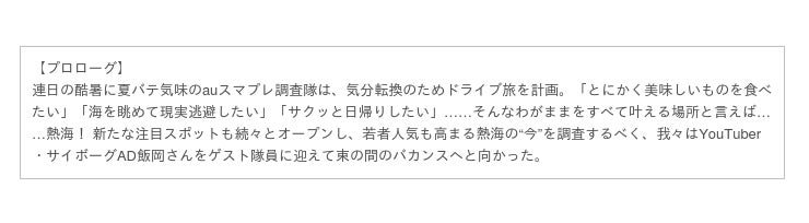 ■「auスマプレ調査隊とサイボーグAD飯岡が行く!1万円で楽しむ熱海旅行特集」 概要