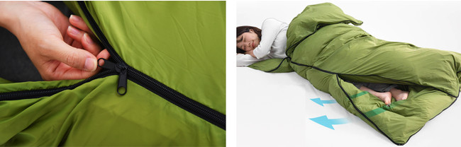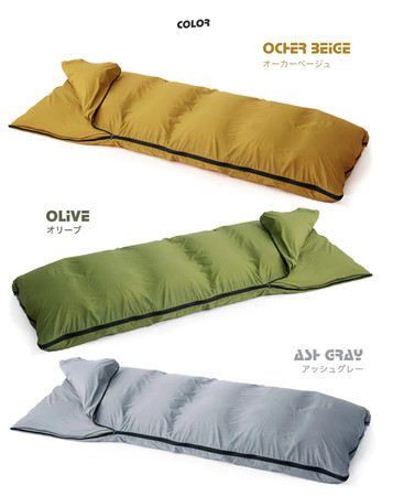 先述の通り、本製品はご自宅にある羽毛布団を入れることで、ダウンシュラフ(寝袋)として使用することができます。