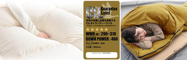 また一般的にダウンシュラフは、羽毛(ダウン)の品質について公的に検査、評価、グレーディングなどを行う機関や認証制度がありませんが、タンスのゲンの羽毛布団は、日本唯一の羽毛専門の公的検査研究機関である「CILコンフォートインデックスラボ」が定める羽毛の性能、品質、グレードを保証する「CILギャランティーラベル」に基づいて、全量検査された羽毛(ダウン)を使用しています。