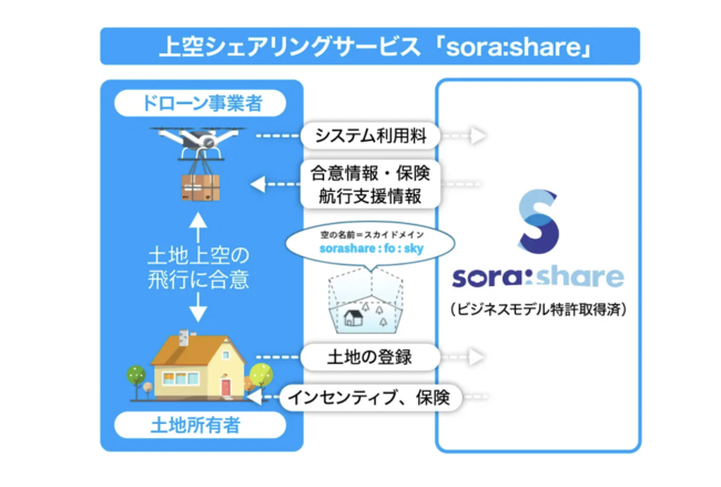 トルビズオンが提供する「sora:share(ソラシェア)」は、2018年10月より開始したドローンが安全に空を飛行するためのサービスです。