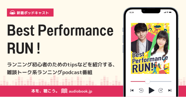 日本一のオーディオブック書籍ラインナップ数(※)を配信する音声配信サービス「audiobook.jp」を運営する株式会社オトバンク(本社:東京都文京区、代表取締役社長:久保田裕也、以下「オトバンク」)は、「カラダのケアをしながらランニングライフを楽しむ」がコンセプトのポッドキャスト番組『Best Performance RUN!』を制作・配信いたします。芸能界屈指のランナーであるハリー杉山さん、実力派声優の井上喜久子さんが出演する番組となっており、9月2日(金)からオーディオブック配信サービス「audiobook.jp」、Apple podcastなどで配信開始します。 ※日本マーケティングリサーチ機構2021年11月調べ。日本語オーディオブック書籍ラインナップ数調査。