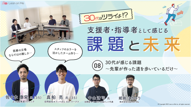 そんな30代 ど真ん中の「bonワークス枚方」真船亮氏、「よこはま発達クリニック」佐々木康栄氏が、悩みや不安を、業界の大先輩である「自閉症eサービス」中山清司氏に直撃!