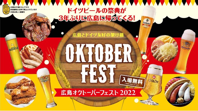 広島オクトーバーフェスト実行委員会(主催:広島テレビ放送株式会社、TSP太陽株式会社)は「広島オクトーバーフェスト2022」を9月15日(木)~9月25日(日)、広島テレビ社屋周辺エキキターレにて3年ぶりに開催いたします。