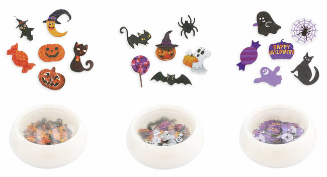 カボチャやオバケ、コウモリなどのチャームをはじめ、新商品のハロウィンモチーフの木材パルプチップもご用意。
