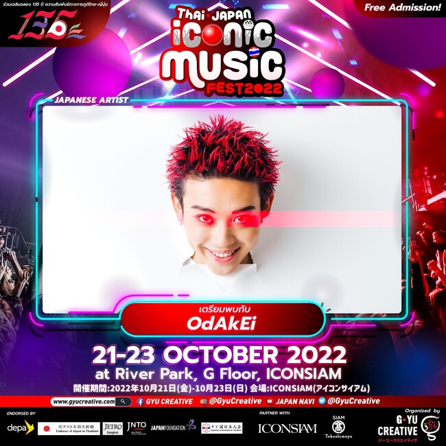 同フェスは、日タイ修好135周年記念認定事業として初開催される音楽祭で、タイと日本のアーティスト総勢50組以上が出演予定となっている。バンコクのタイ最大級となる複合施設「ICOMSIAM(アイコンサイアム)」に二つのステージを設けて開催される。